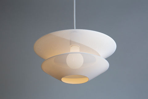 tilde(チルダ)はFDM3Dプリンタによって作られるプロダクトシリーズです。編むように樹脂を溶かして積み重ねることで、樹脂でありながらも温かく柔らかな表情を作り出すことができる特殊な技法"編み重ね"を用い、熱溶解式3Dプリント技術における実用性・審美性・生産性を兼ね備える技術的極大点を追求します。通常3Dプリンタにおいて、積層された際に残る縞模様は嫌なものとして、できるだけ目立たないようにしたいと思われがちですが、そうするためには積層のピッチを小さくする必要があり、そのためには長い造形時間が必要になります。tildeは積層ピッチを敢えて大きくし、互い違いに積層することによって、積層自体をデザインに取り込むことに成功しました。これは造形時間を短くすることができることを意味し、まさにFDM3Dプリンタによる合理的なデザインと言えます。